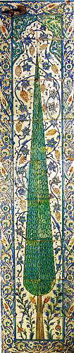 Die Zypresse (Cupressus sempervirens), ein immergrüner Nadelbaum, wurde von den Phöniziern aus Asien nach Südeuropa gebracht. Während des römischen Reiches wurde sie an vielen Orten im Mittelmeerraum angepflanzt und kultiviert. Durch ihre Überlebensfähigkeit unter harschen Bedingungen konnte sie sich rasch ausbreiten. Ihr schneller, hoher Wuchs machte sie bald zu einer beliebten Zierpflanze in Gärten und Hainen. Ihre Form, welche das Bild der mediterranen Landschaft prägt, erinnert an eine griechische Säule. Die Zypresse kann bis zu 3000 Jahre alt werden. Ihr Holz gilt als unverderblich und kann durch kein Insekt zerstört werden.