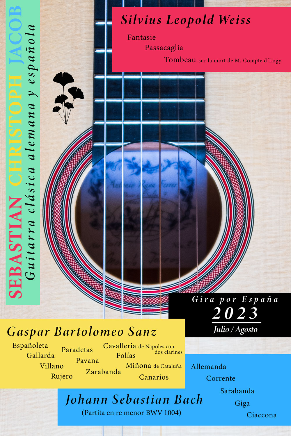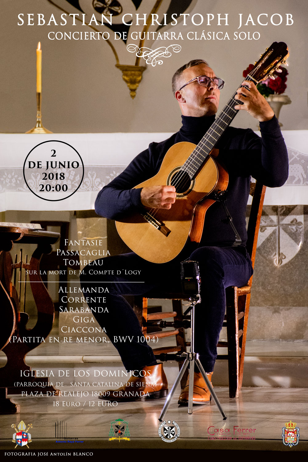 Sebastian Christoph Jacob spielt im Casa Museo de Falla einen Barockzyklus mit Werken in D von Silvius Leopold Weiss (Fantasie, Passacaglia und Tombeau) sowie Johann Sebastian Bach (Partita II BWV 1004) auf der Konzertgitarre.