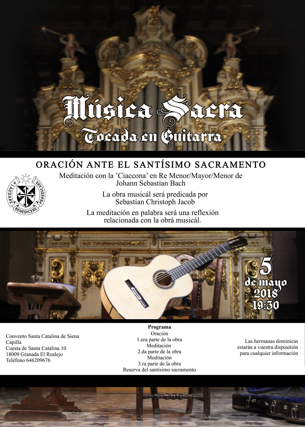 Sebastian Christoph Jacob spielt erneut in der Reihe "Musica Sacra" Barockimprovisationen und die Chaconne in D-Moll von Johann Sebastian Bach (Partita II, BWV 1004) auf der Orgelempore der Klosterkirche des Dominikanerinnen-Konvents Santa Catalina in Granada, Spanien.
